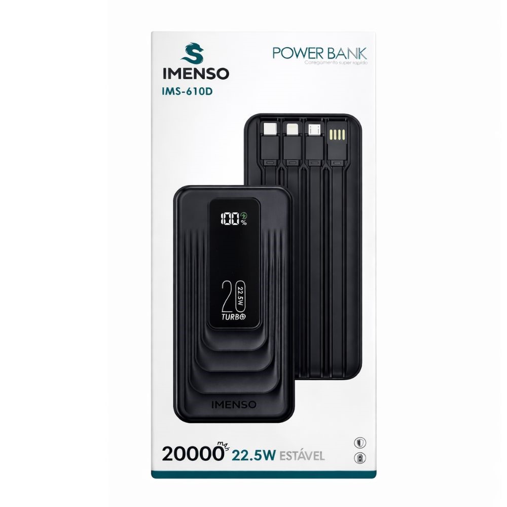 O Carregador Imenso IMS-610D USB Portátil é a solução ideal para quem busca praticidade e eficiência no carregamento de dispositivos móveis. Com uma impressionante capacidade de 20.000 mAh, ele garante que seus aparelhos permaneçam sempre carregados, mesmo durante os dias mais agitados. Compatível com uma ampla gama de dispositivos, incluindo iPhones e smartphones Android, este carregador é perfeito para quem utiliza diferentes marcas e modelos.