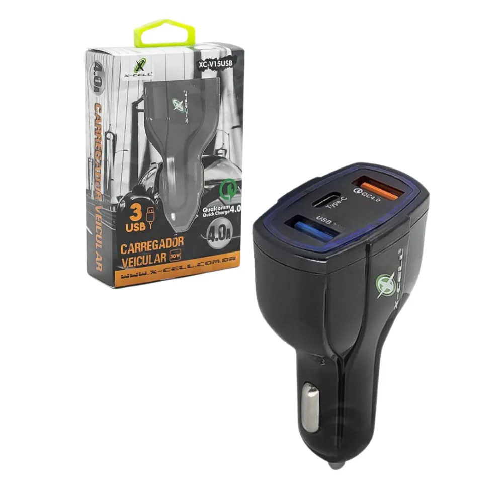 O carregador veicular XC-V15USB com saídas PD USB-C e USB-A, proporcionam o carregamento rápido e simultâneo de até dois dispositivos. Carregue todos os seus dispositivos de forma rápida e prática. Até 75% mais rápido que os carregadores comuns!